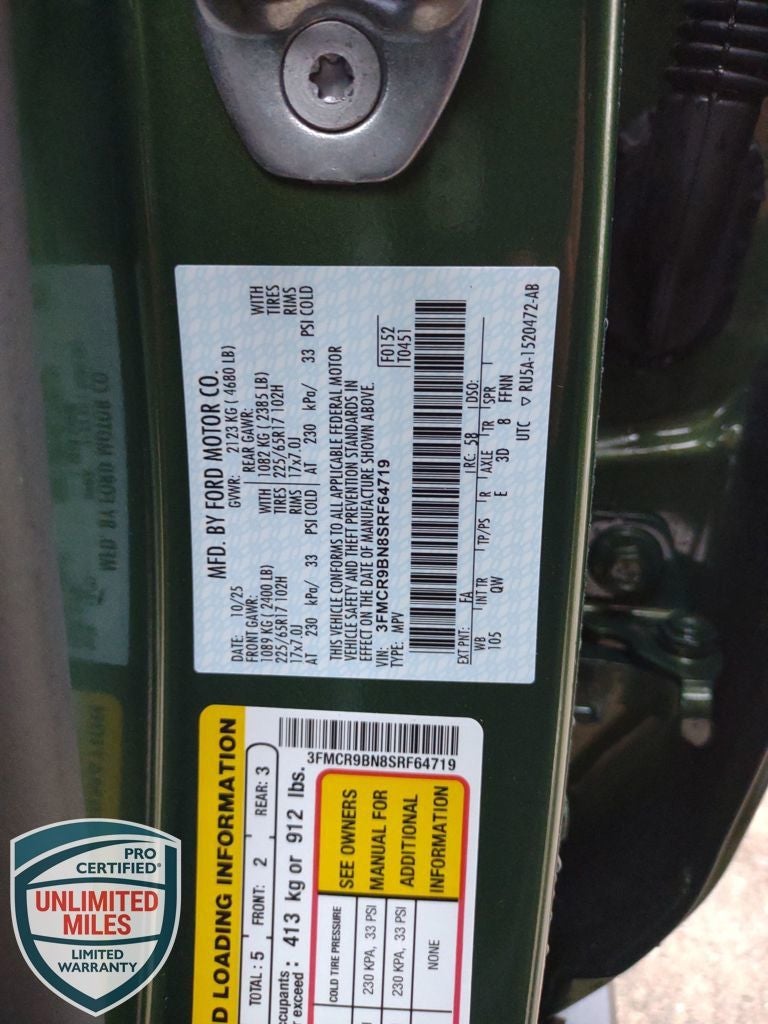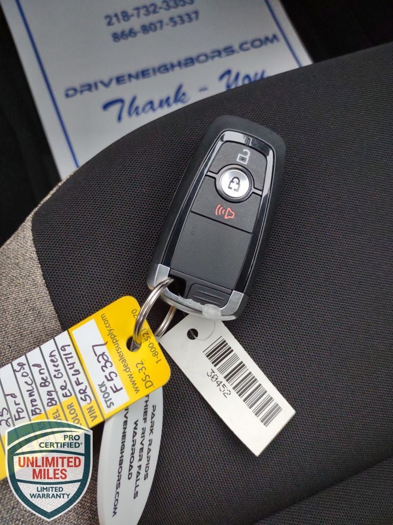 Neighbors Ford Of Park Rapids is honored to offer this good-looking 2025 Ford Bronco Sport Big Bend in Eruption Green Metallic, Beautifully equipped with Convenience Package (Front Driver/Passenger Seat Back Map Pockets, Heated 8-Way Power Driver's Seat, LED Fog Lamps, Premium Wrapped Steering Wheel, and Universal Garage Door Opener (UGDO)), Equipment Group 200A, 4-Wheel Disc Brakes, 6 Speakers, ABS brakes, Air Conditioning, Alloy wheels, AM/FM radio: SiriusXM, AM/FM Stereo, Auto High-beam Headlights, Automatic temperature control, Brake assist, Cloth w/Easy-to-Clean Front Bucket Seats, Compass, Delay-off headlights, Driver door bin, Driver vanity mirror, Dual front impact airbags, Dual front side impact airbags, Electronic Stability Control, Emergency communication system: SYNC 4 911 Assist, Four wheel independent suspension, Front & Rear Floor Liners w/o Carpet Mats, Front & Rear Splash Guards, Front anti-roll bar, Front Bucket Seats, Front Center Armrest, Front License Plate Bracket, Front reading lights, Fully automatic headlights, Heated door mirrors, Illuminated entry, Knee airbag, Low tire pressure warning, Occupant sensing airbag, Outside temperature display, Overhead airbag, Overhead console, Panic alarm, Passenger door bin, Passenger vanity mirror, Power door mirrors, Power steering, Power windows, Radio data system, Rear anti-roll bar, Rear Parking Sensors, Rear reading lights, Rear seat center armrest, Rear window defroster, Rear window wiper, Remote keyless entry, Security system, SiriusXM, Speed control, Speed-sensing steering, Speed-Sensitive Wipers, Split folding rear seat, Steering wheel mounted audio controls, SYNC 4 w/Enhanced Voice Recognition, Tachometer, Telescoping steering wheel, Tilt steering wheel, Traction control, Trip computer, Variably intermittent wipers, and Wheels: 17 Carbonized Gray-Painted Aluminum! Price does not reflect state taxes and registration. $2000 - Retail Customer Cash. Exp. 03/31/2026 $500 - Bonus Customer Cash. Exp. 03/31/2026