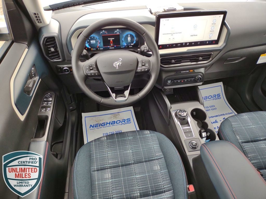 Neighbors Ford Of Park Rapids is proud to offer this great 2025 Ford Bronco Sport Heritage in Azure Gray Metallic Tri-Coat, Beautifully equipped with Convenience Package (Front Driver/Passenger Seat Back Map Pockets, Heated 8-Way Power Driver's Seat, LED Fog Lamps, Premium Wrapped Steering Wheel, and Universal Garage Door Opener (UGDO)), Equipment Group 250A, 4-Wheel Disc Brakes, 6 Speakers, ABS brakes, Air Conditioning, Alloy wheels, AM/FM radio: SiriusXM, AM/FM Stereo, Auto High-beam Headlights, Automatic temperature control, Brake assist, Compass, Delay-off headlights, Driver door bin, Driver vanity mirror, Dual front impact airbags, Dual front side impact airbags, Electronic Stability Control, Emergency communication system: SYNC 4 911 Assist, Four wheel independent suspension, Front & Rear Floor Liners w/o Carpet Mats, Front & Rear Splash Guards, Front anti-roll bar, Front Bucket Seats, Front Center Armrest, Front License Plate Bracket, Front reading lights, Fully automatic headlights, Heated door mirrors, Illuminated entry, Knee airbag, Low tire pressure warning, Occupant sensing airbag, Outside temperature display, Overhead airbag, Overhead console, Panic alarm, Passenger door bin, Passenger vanity mirror, Plaid Cloth Front Bucket Seats, Power door mirrors, Power Moonroof, Power steering, Power windows, Radio data system, Rear anti-roll bar, Rear Parking Sensors, Rear reading lights, Rear seat center armrest, Rear window defroster, Rear window wiper, Remote keyless entry, Security system, SiriusXM, Speed control, Speed-sensing steering, Speed-Sensitive Wipers, Split folding rear seat, Steering wheel mounted audio controls, SYNC 4 w/Enhanced Voice Recognition, Tachometer, Telescoping steering wheel, Tilt steering wheel, Traction control, Trip computer, Variably intermittent wipers, and Wheels: 17 Oxford White-Painted Aluminum! Price does not reflect state taxes and registration. $2000 - Retail Customer Cash. Exp. 03/31/2026 $500 - Bonus Customer Cash. Exp. 03/31/2026