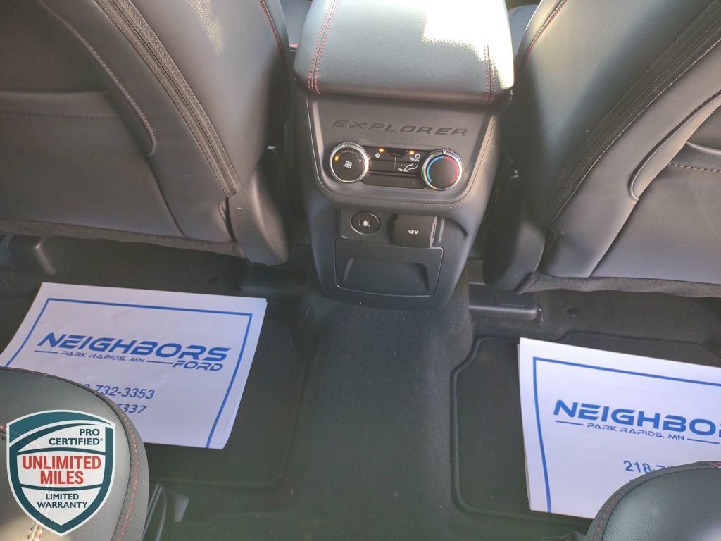 Neighbors Ford Of Park Rapids is very proud to offer this attractive 2026 Ford Explorer ST-Line in Space White Metallic, Beautifully equipped with Equipment Group 300A Standard Package (Heated Unique Cloth Captain's Chairs, Radio: B&O Sound System by Bang and Olufsen, and Wheels: 20 Ebony-Painted Machined Aluminum), 10 Speakers, 2nd Row Captain's Chairs w/E-Z Entry and Armrest, 3rd row seats: bench, 4-Wheel Disc Brakes, ABS brakes, Air Conditioning, Alloy wheels, AM/FM radio: SiriusXM with 360L, Apple CarPlay/Android Auto, Auto High-beam Headlights, Automatic temperature control, Brake assist, Bumpers: body-color, Compass, Delay-off headlights, Driver door bin, Driver vanity mirror, Dual front impact airbags, Dual front side impact airbags, Electronic Stability Control, Emergency communication system: 911 Assist, Exterior Parking Camera Rear, Four wheel independent suspension, Front anti-roll bar, Front Bucket Seats, Front Center Armrest, Front dual zone A/C, Front fog lights, Front License Plate Bracket, Front reading lights, Fully automatic headlights, Garage door transmitter, Heated door mirrors, Heated front seats, Heated steering wheel, Illuminated entry, Knee airbag, Leather steering wheel, Low tire pressure warning, Navigation System, Occupant sensing airbag, Outside temperature display, Overhead airbag, Overhead console, Panic alarm, Panoramic Fixed Glass Roof with Power Shade, Passenger door bin, Passenger vanity mirror, Power door mirrors, Power driver seat, Power Liftgate, Power passenger seat, Power steering, Power windows, Rear air conditioning, Rear anti-roll bar, Rear reading lights, Rear window defroster, Rear window wiper, Remote keyless entry, Security system, Speed control, Speed-sensing steering, Speed-Sensitive Wipers, Split folding rear seat, Spoiler, Steering wheel mounted audio controls, Tachometer, Telescoping steering wheel, Tilt steering wheel, Traction control, Trip computer, and Variably intermittent wipers! Price does not reflect state taxes and registration. $2500 - Retail Customer Cash. Exp. 03/31/2026