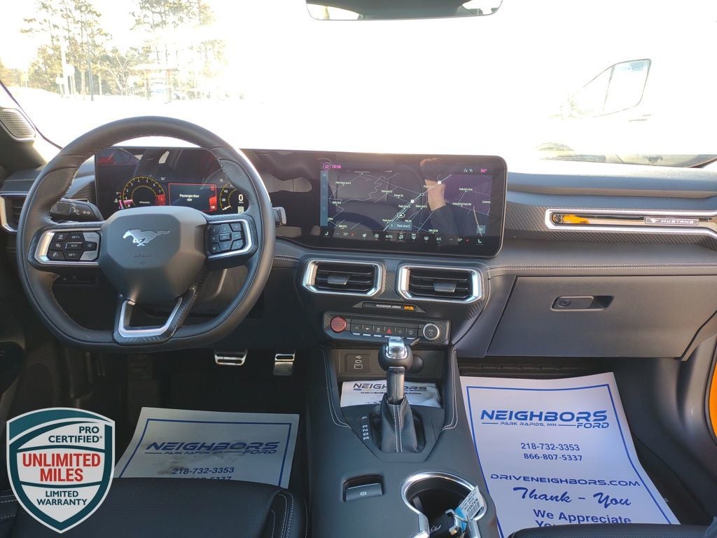 Neighbors Ford Of Park Rapids is delighted to offer this fantastic 2026 Ford Mustang GT Premium in Orange Fury Metallic Tri-Coat, Beautifully equipped with Bronze Appearance Package, Equipment Group 401A High Package (Aluminum Foot Pedals, AM/FM Stereo, Driver Seat Memory with 3 Settings, Leather-Trimmed Bucket Seats with Color Accents, SYNC 4, and Wheels: 19 x 8.5 Shadow Silver-Painted Aluminum), Ford Co-Pilot360 Assist+, 3.55 Limited Slip Rear Axle, 4-Wheel Disc Brakes, ABS brakes, Active Valve Performance Exhaust, Air Conditioning, Alloy wheels, Auto High-beam Headlights, Automatic temperature control, B&O Sound System by Bang & Olufsen with 12 Speakers, Black Painted Wedge Decklid Spoiler, Brake assist, Bumpers: body-color, Compass, Delay-off headlights, Driver door bin, Driver vanity mirror, Dual front impact airbags, Dual front side impact airbags, Electronic Stability Control, Emergency communication system: 911 Assist, Exterior Parking Camera Rear, Floor Mats, 1st Row, Black with City Silver GT Logo, Four wheel independent suspension, Front anti-roll bar, Front Bucket Seats, Front Center Armrest, Front dual zone A/C, Front reading lights, Fully automatic headlights, Illuminated entry, International Orange Seat Belt, Knee airbag, Leather Shift Knob, Leather steering wheel, Low tire pressure warning, Occupant sensing airbag, Outside temperature display, Over-the-Top Racing Stripe, Overhead airbag, Overhead console, Panic alarm, Passenger door bin, Passenger vanity mirror, Power door mirrors, Power steering, Power windows, Premium Floor Liners Front and Rear (with Carpet Mats), Radio data system, Rain sensing wipers, Rear anti-roll bar, Rear Parking Sensors, Rear window defroster, Remote keyless entry, Speed control, Speed-sensing steering, Speed-Sensitive Wipers, Split folding rear seat, Sport steering wheel, Steering wheel mounted audio controls, Tachometer, Telescoping steering wheel, Tilt steering wheel, Traction control, Trip computer, Variably intermittent wipers, Voltmeter, and Wedge Decklid Spoiler!